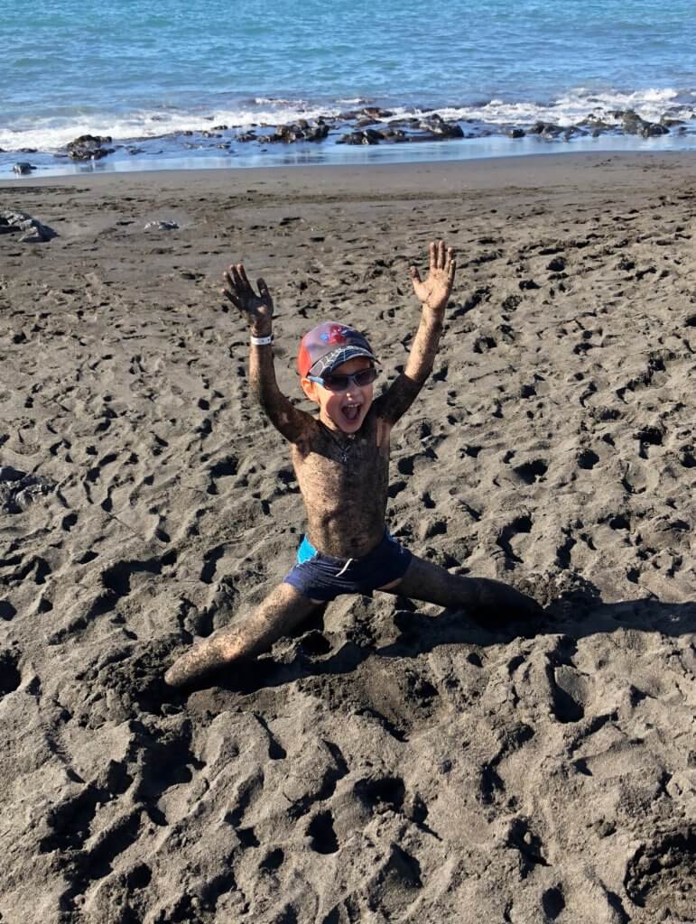 Максу эта идея очень понравилась. Мальчики резвились на берегу и ловили волны, а я наслаждалась солнышком и тем, как мои резвятся. Периодически они ко мне подходили погреться). Максим валялся в песке и тем самым грелся.