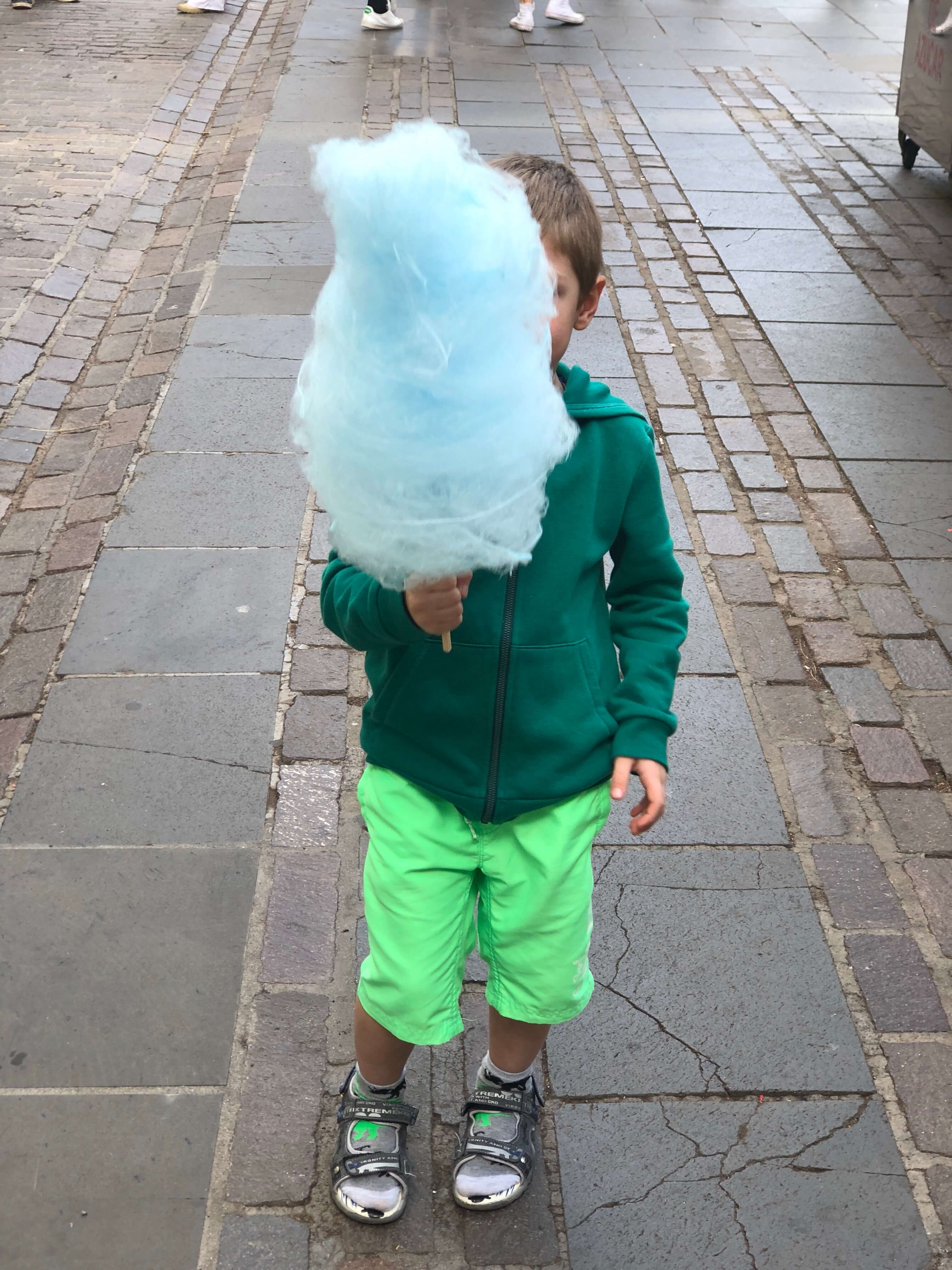 Догуляли мы до торговой улицы с разными сладостями. За хорошее поведение Макс был премирован сладкой ватой).