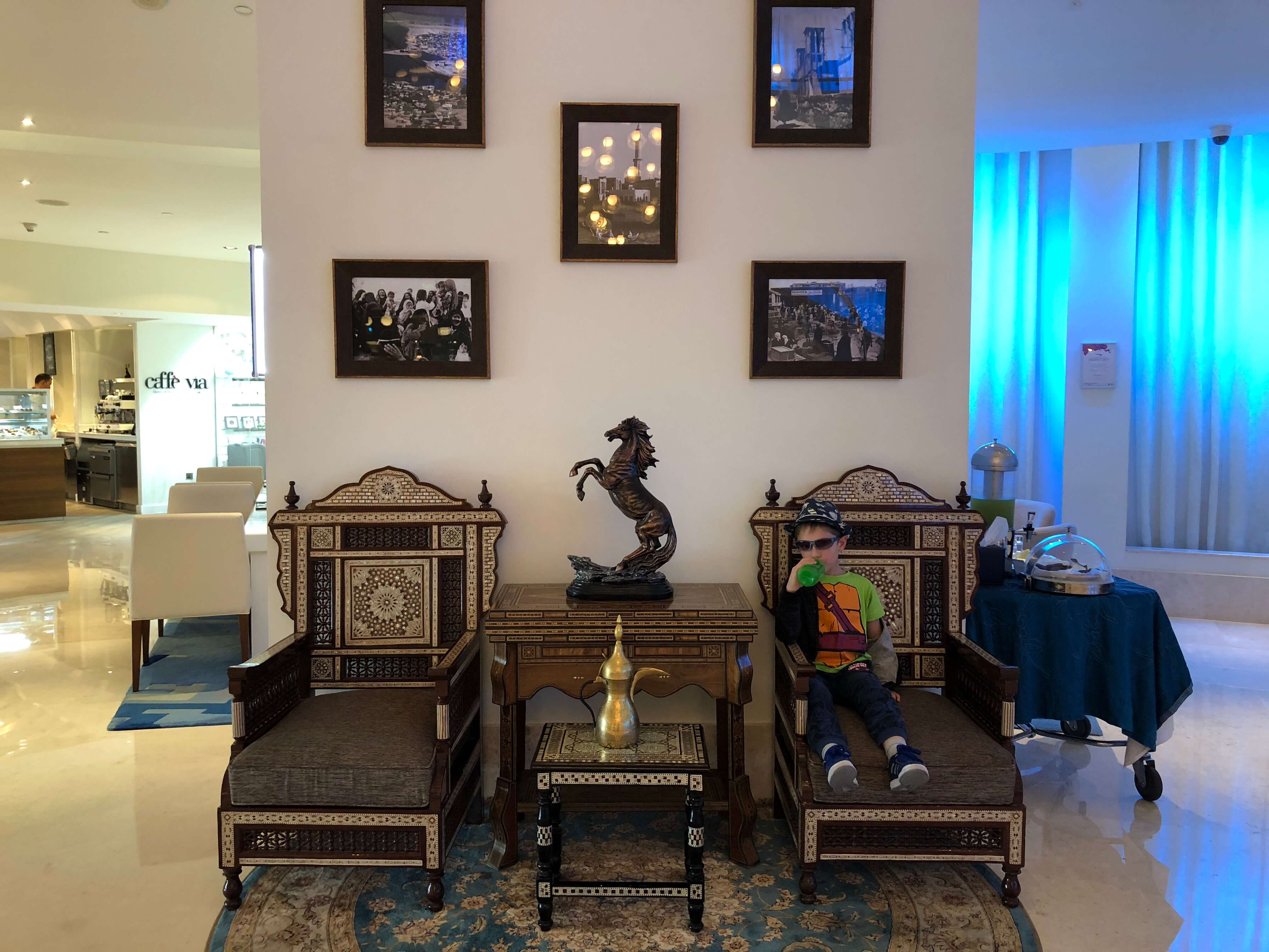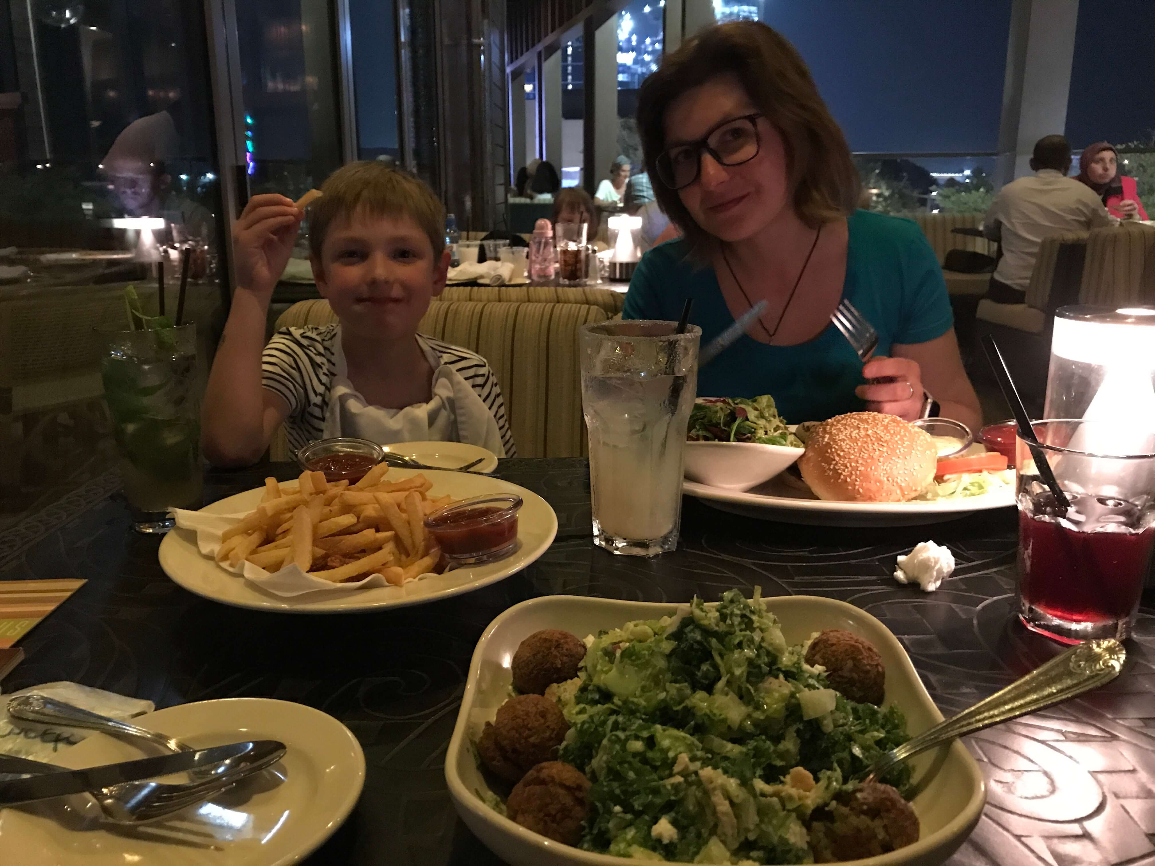 Добрались до нашего отеля JA Ocean View Hotel примерно часам к 10 уставшие и голодные. Ожидаемо наш номер не был готов, предложили заселить сейчас, но в семейный двухкомнатный номер с доплатой в 500 евро, надо сказать не бюджетно). Мы решили позавтракать сначала, а потом на сытый желудок решить.