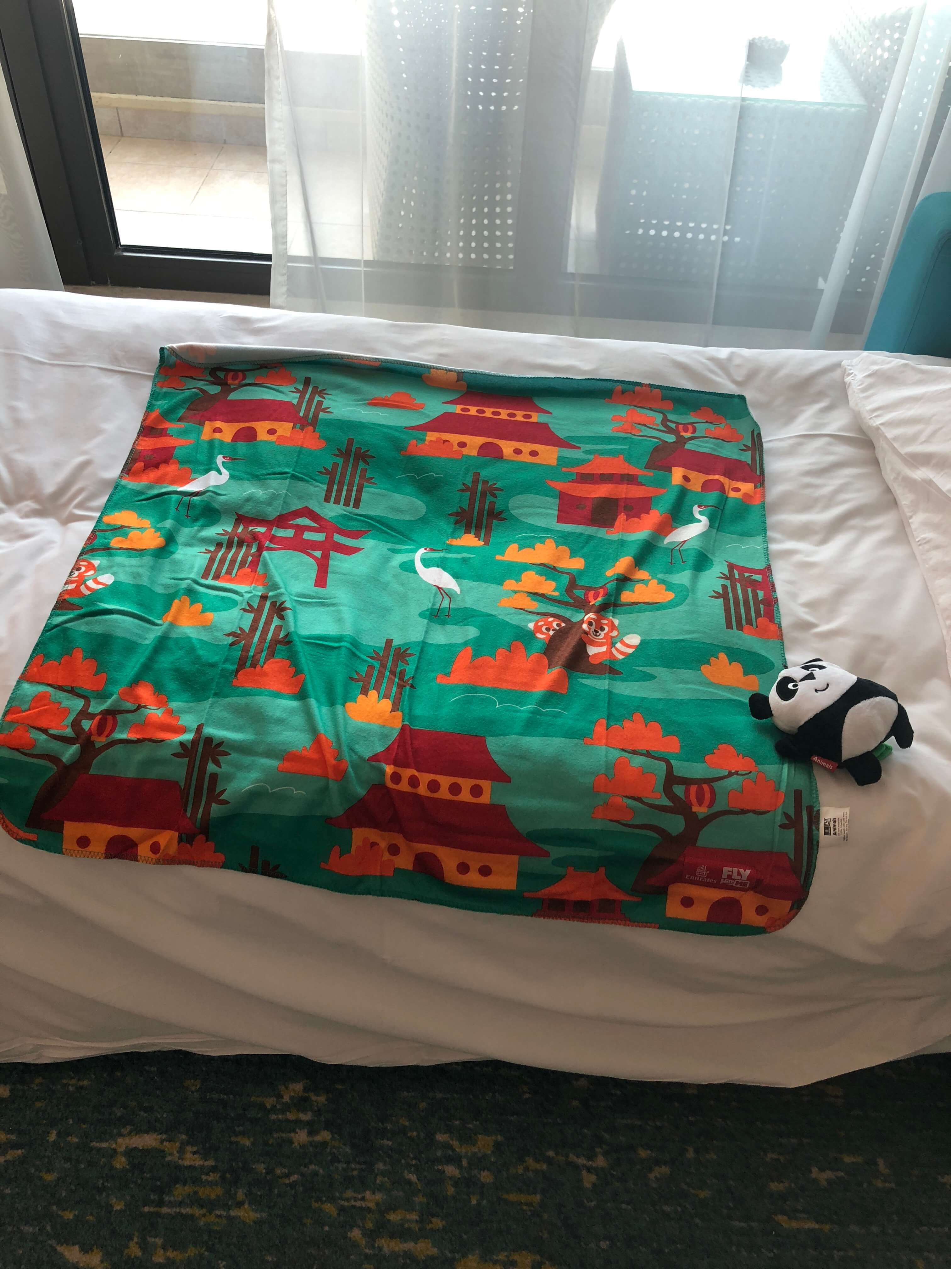 Пока Макс спал ему принесли детский подарок. Плед/полотенце (кому как нравится), игрушка, карандаши и книжка с заданиями. Очень порадовал плед, нужная вещь.